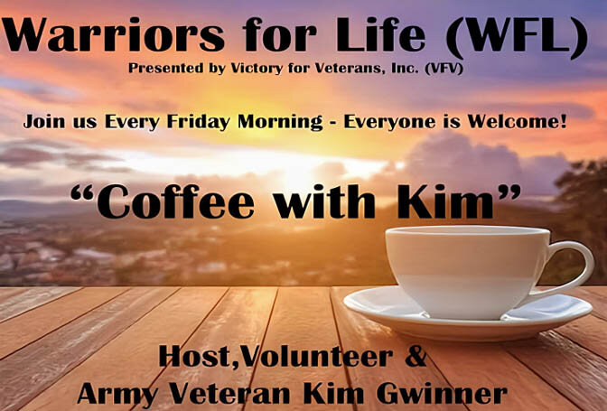 Warriors for Life (WFL) Online “Coffee with Kim” Presented by Victory for Veterans, Inc. (VFV) — Every Friday Morning starting at 6:00 AM PT, 7:00 AM MT, 8:00 AM CT, and 9:00 AM ET