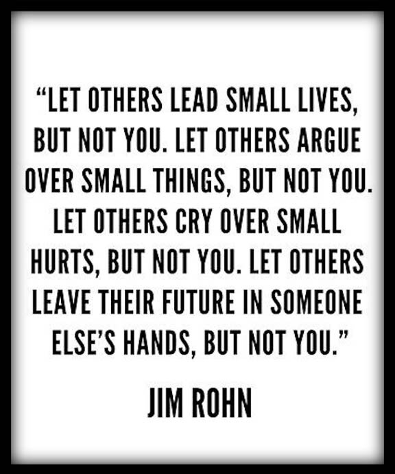 “Let others lead small lives, but not you. Let others argue over small things, but not you. Let others cry over small hurts, but not you. Let others leave their future in someone else’s hands, but not you” — Jim Rohn