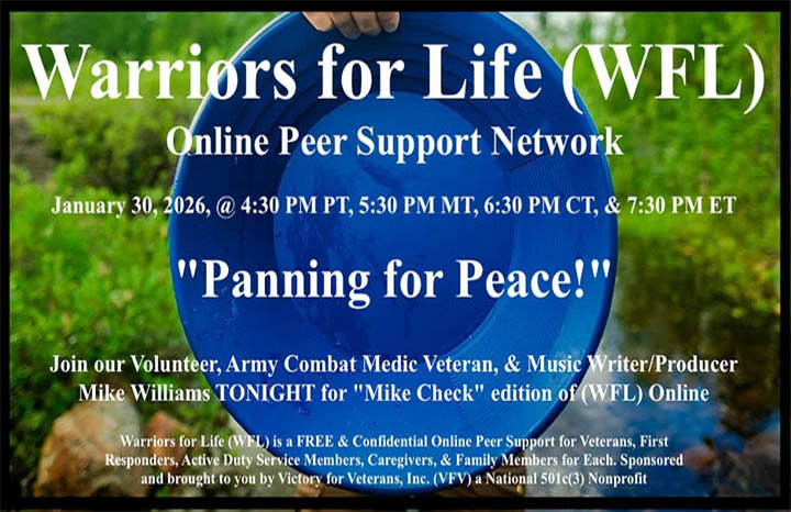 Warriors for Life (WFL) Online "Mike Check" edition presented by Victory for Veterans, Inc. (VFV) — Friday (TONIGHT), January 30, 2026, @ 4:30 PM PT, 5:30 PM MT, 6:30 PM CT, & 7:30 PM ET