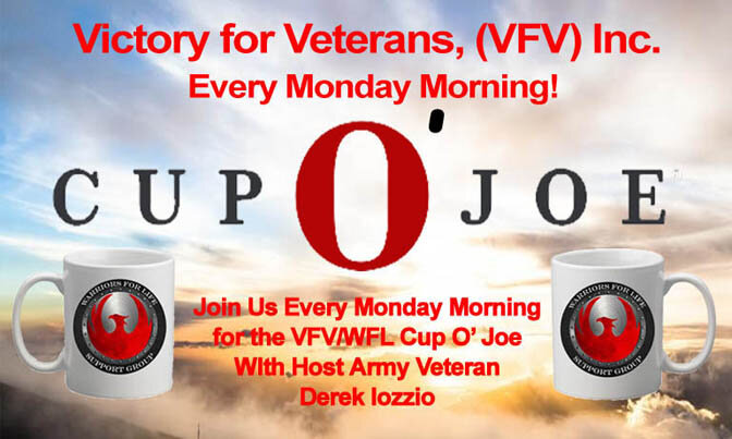 Warriors for Life (WFL) Online "Cup O' Joe" Presented by Victory for Veterans, Inc. (VFV) — Every Monday Morning starting at 6:00 AM PT, 7:00 AM MT, 8:00 AM CT, and 9:00 AM ET