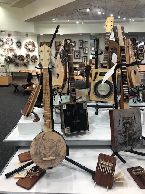 If you ever go to West Virginia, and are on 77 ...take a lunch break at the Tamarac Rest Area. Not only is the food great since they train the Chef's for the Five Star Greenbriar Hotel there, but they take things built by Local Craftsman and offer them for sale. And man oh man, we are talking about Master Level Artisans here! That's the building behind me. And the other pictures are the kinds of things they have for sale.