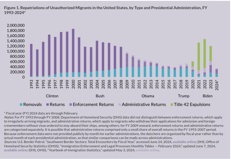 Both the Obama and Biden administrations, along with Bush and Clinton, all deported more illegals in each 4 yr stretch than Trump deported in his first administration, and more than his rate so far this time.