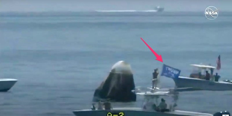 A boat flying a Trump flag approached SpaceX's spaceship after the astronauts landed. NASA...