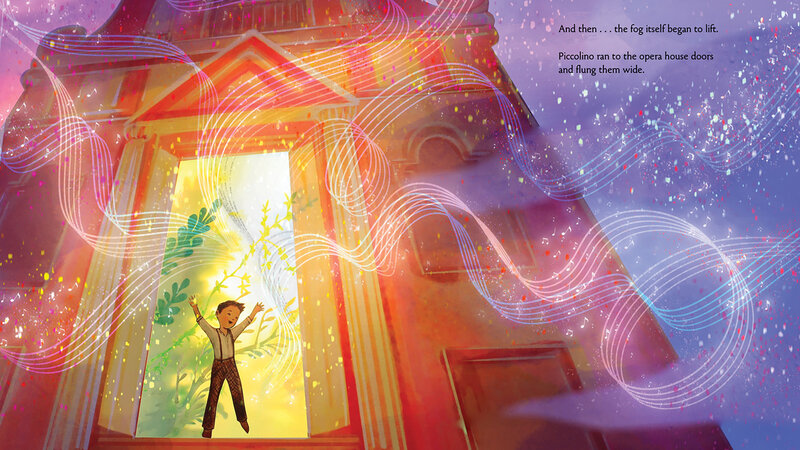 The protagonist is young Piccolino, whose father is the maestro of the town opera house. Even though the fog is keeping people at home, the pair continue cleaning the empty building. One day Piccolino tinkers with the piano, and notices that the drooping plants in the lobby seem to brighten at the sound of music.