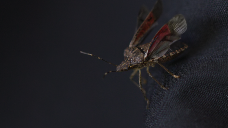 Vincent Vaughn-Uding has a brown marmorated stink bug in a cup, and he’s trying to convince it to leave.