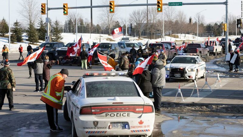 Access to three US-Canada border crossings cut off by trucker protest blockades