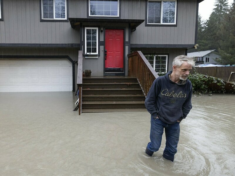 In southwest Washington, a Coast Guard helicopter plucked a man from the roof of his truck in floodwaters near the hamlet of Rosburg and also rescued four people who were trapped in a house surrounded by 4 feet (1.2 meters) of water, a Coast Guard statement said.