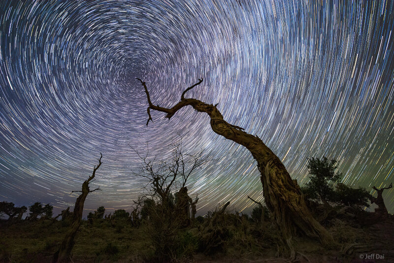 Good morning, Rallypoint, and welcome to the July 28th edition of Astronomy Picture of the Day (APOD): "North Celestial Tree." Based on what online information I could find, the Yiwu Desert Poplar Forests in northwest Xinjiang, China is home to the "hero tree" of the desert: populus euphratica. The trees earn their nick name based on their ability to resist drought, wind-driven sand, salt, and alkali. Images like today's APOD also suggest that it is a photographer's paradise.