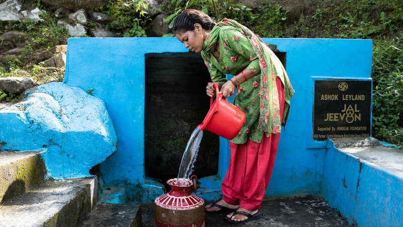 Joshi is calculating the volume of water coming from a mountain spring in her village of Raushil in the state of Uttarakhand, India. There are roughly 3 million such springs emanating from the Indian Himalayan Region, but in 2017, the Indian government released a concerning report saying nearly half of them have run dry or are becoming seasonal.