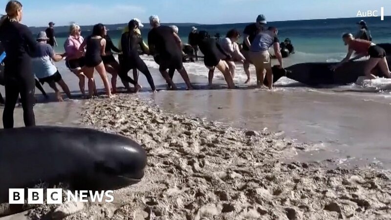 I helped pull a shark back into the water when I was younger (Hint, grab the tail...with gloves on!) Even though it was small, it took five of us to drag the darn thing. Can't imagine moving a whale ...by hand!