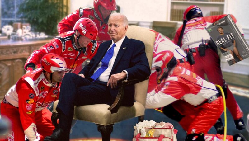 Biden Admin Hires NASCAR Pit Crew To Rapidly Change Biden’s Diaper Without Anyone Noticing