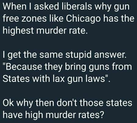 Lt Col Charlie Brown All the democrats do is talk about making it harder for the honest citizen to obtain and own guns. I want to know when they are going to do the same for criminals. Without weapons crime in this country will soar to levels we can't even imagine right now given that the thugs know we can't defend ourselves.
