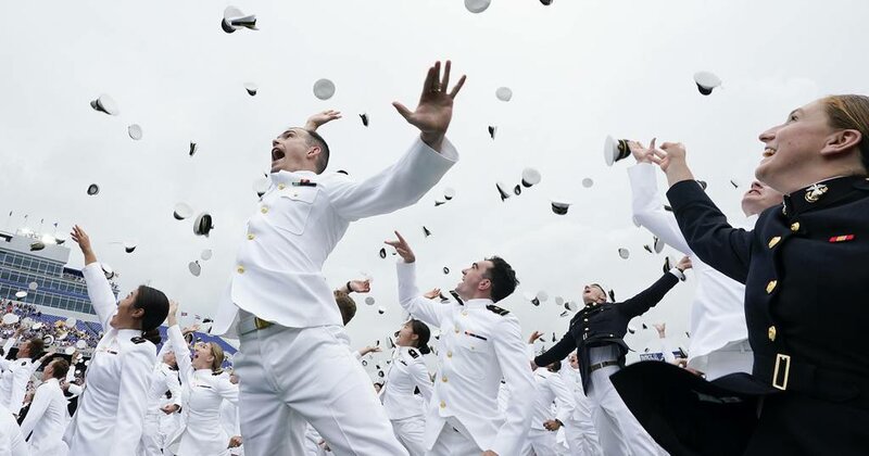 U.S. Naval Academy graduates celebrate at the end of the academy's graduation and commission ceremony in Annapolis, Md., Friday. (Manuel Balce Ceneta/AP)