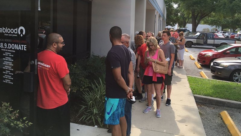 Hundreds of Central Floridians lined up Sunday morning at the blood center on West Michigan Avenue after learning about the shooting spree.