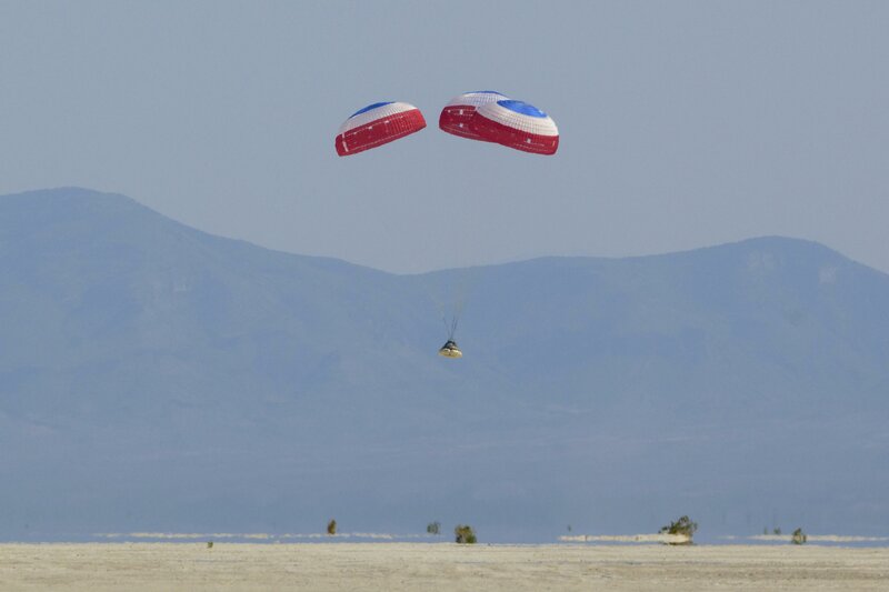 It was a quick trip back: The Starliner capsule parachuted into the New Mexico desert just four hours after leaving the orbiting lab, with airbags attached to cushion the landing. Only a mannequin was buckled in.