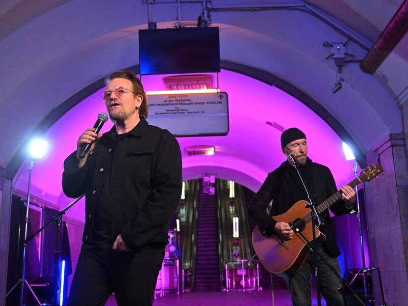 Bono and The Edge perform U2 gig in Kyiv bomb shelter