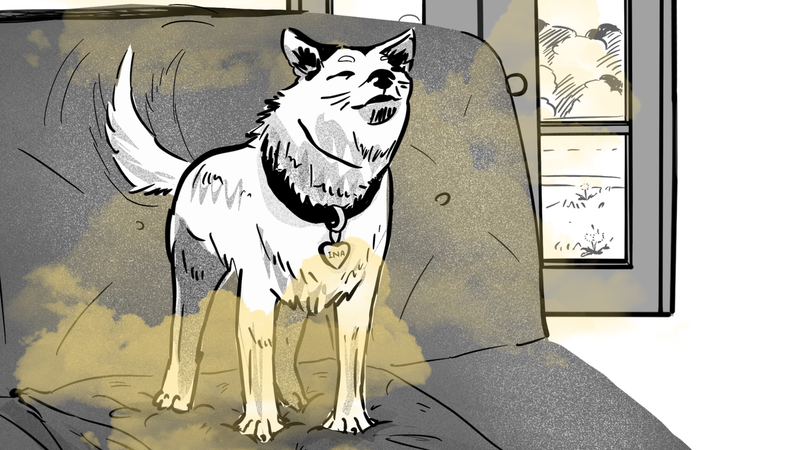 It wasn't one of our dogs that would do this when I was a kid, but one of our barn cats. One of our cats had litter of kittens one spring and for some reason one of the kittens made me her human, when ever I was outside doing chores she would run up to me and climb my leg and sit on my shoulder till I was done and went in for the night. The only time she didn't follow me around was when Dad & I would bale hay, but when I would go to turn the bales (so the bottoms of the round bales would dry) she'd follow me and if there was a field mouse she'd get a free meal. In the fall & winter she'd climb my leg and lay in the hood of my sweater, when I'd milk I'd make sure she got some. When I leave the house to go to the bus stop, about a 1/4 mile away, she would follow me till I'd tell her to go home and she would. Then when I came home she'd meet me and walk or ride on my shoulder. In the winter she'd be in the hay keeping warm till she heard me getting everything ready to milk, and she'd show up wanting petted and she'd be purring up a storm. When I got out of the Army and got my first apartment I brought her too, she liked being inside, what I didn't know was she was pregnant. She would jump up on the bed and curl up in the crook of my neck and fall asleep, then after a couple hours jump down and find some place to spend the rest of the night. I had made her a whelping box and she would sleep in it. One night I went to bed and I felt her jumping up and curling up, about 2 am I heard a scream in my left ear, I sat up and turned on the light and there she was having a kitten, after she got it cleaned up I picked it up and with her following I put it in her box, she got in and started to lick the little one, I cleaned up the bed and went back to sleep. About a hour later she screamed in my ear again, sure enough she was having kitten #2. To make this shorter, she had 5-6 kittens that night, but she had to be next to me when she had them, no matter where I went, one (the runt) didn't make it. She lived in to her mid teens.
