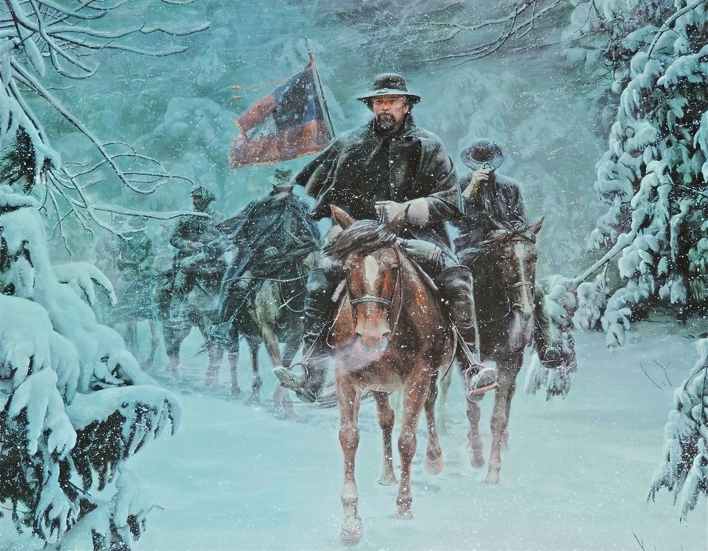TSgt Joe C.: Some Confederates refused to surrender and departed Fort Donaldson in the teeth of a raging snowstorm. They were led by then Lieutenant Colonel Nathan Bedford Forrest, who is said to have stated "I would rather my bones to bleach on the hillside than to go to a Yankee prison." Mort Kunstler captures this bit of history in his print "Ghost Column" (one of my favorites). Thanks for the post.