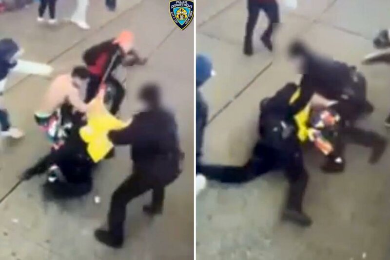 Cops allegedly beaten by rowdy migrant mob near Times Square — with suspects later freed without...