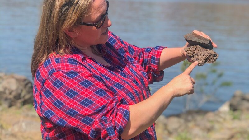 “So you see all of these black rocks that are on either side of us, on either side of the river? Those are basalts. And they’re volcanic rocks that erupted about 15.5 million years ago,” said Casie Davidson, a geologist with Pacific Northwest National Laboratory.