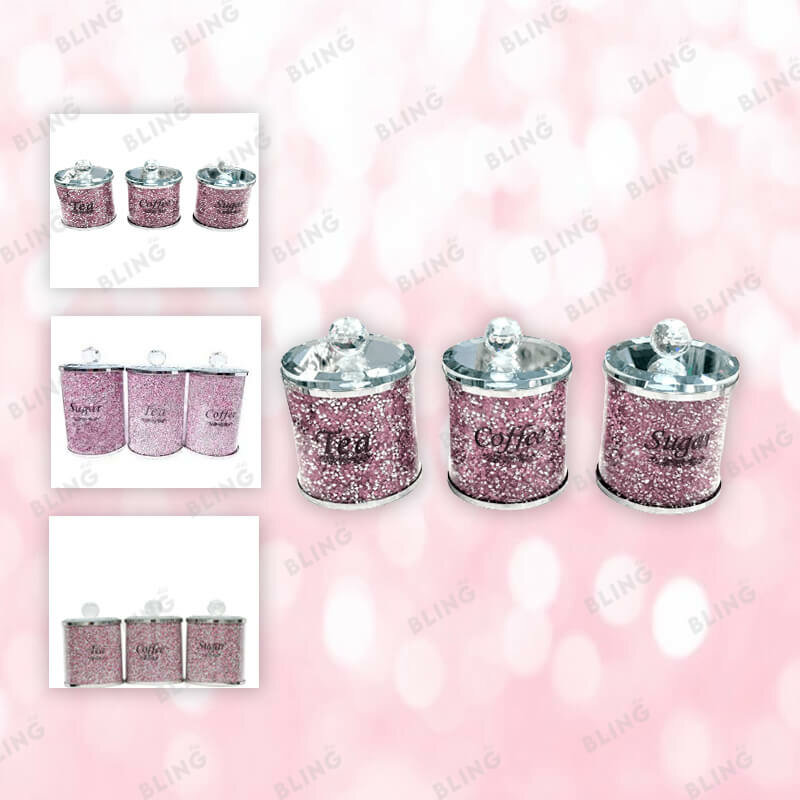 Crushed Diamond Jars Tea/ Coffee/ Sugar Pink - Bling 4 Us Wholesale