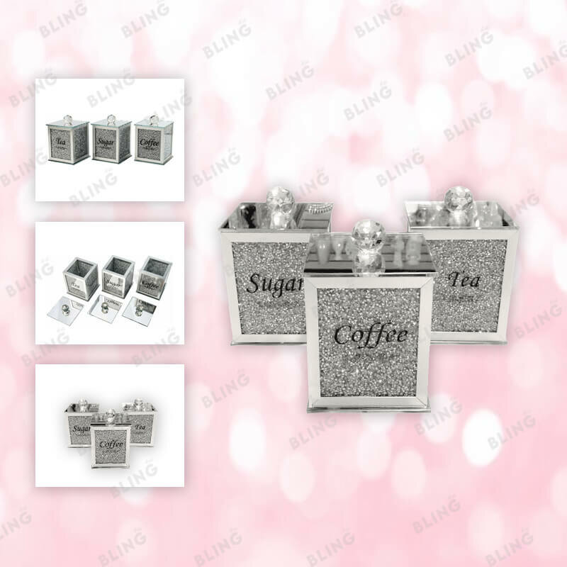 Crushed Diamond Square Jars Tea/ Coffee/ Sugar - Bling 4 Us Wholesale
