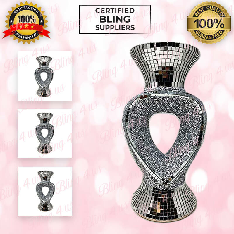 Crushed Mirror Flower Pot vase Holder Decoration - Bling 4 Us Wholesale