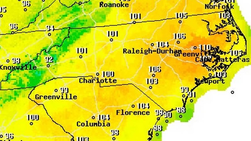 'Dangerously hot weather' expected across NC this week. It could feel like 110.
