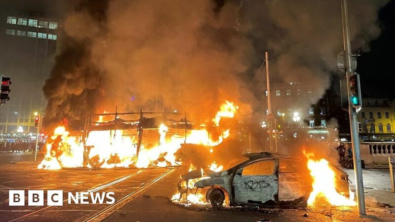 The Republic of Ireland's police chief has blamed rioting in Dublin city centre on Thursday on a "lunatic, hooligan faction driven by a far-right ideology".
