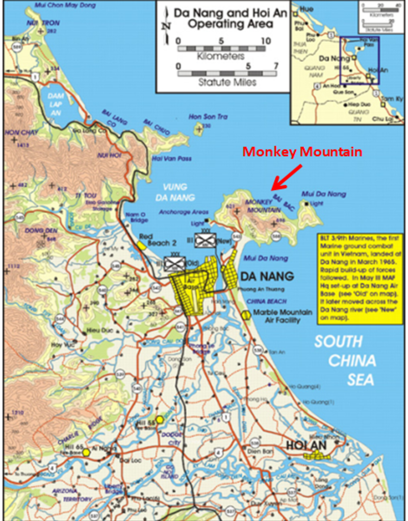 At first, the Air Force’s VHF intercept mission at Danang was a bust. The problem was caused by the terrain surrounding the air base: on three sides it was closed in by mountains three to twelve miles away with peaks as high as five thousand feet. Onl ‘ the mouth of the harbor was open [ — ]. The ASA element, which had been training the local ARVN J-7 COMINT personnel manning their own site at the harbor, had found no VHF; even HF was difficult to hear. Any intercept of VHF communications emitted from aircraft flying at medium-to-low altitudes beyond the mountains was almost impossible. The only way to hear anything on the VHF range was to relocate to a better site.