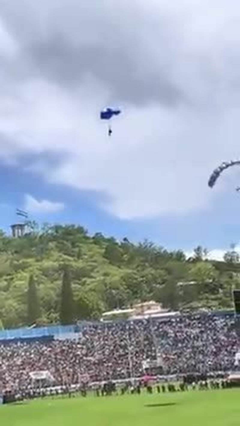 I have never seen anything like this in precision parachuting. Generally those parachuting after free falling are informed on the wind conditions to prevent situations like this.