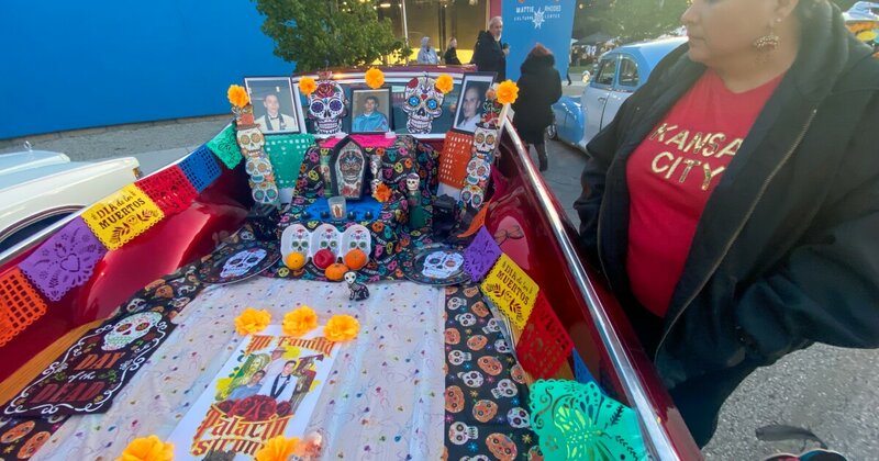 As the crowd wandered through the event, a handful of families stood beside a row of cars which lined 17th Street. In the opened trunks of each car sat intricately decorated shrines, covered in the traditional arrangements of orange marigolds and calaca skulls, known as ofrendas.