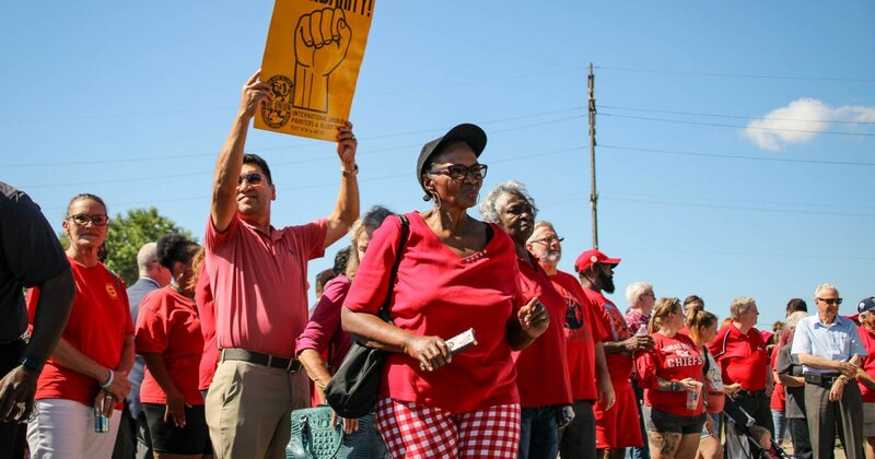 Kansas Gov. Laura Kelly; Kansas City, Kansas, Mayor Tyrone Garner; Kansas City, Missouri, Mayor Quinton Lucas; Wyandotte County District Attorney Mark Dupree; and Kansas House representatives spoke at the rally alongside UAW Local 31 members.