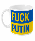 Fuck Putin. It's a sentiment shared by many. 3.50 from every sale of this Ukraine coloured mug will be donated to charities supporting citizens on the ground in Ukraine. However, if you'd rather just donate directly to a charity supporting people in Ukraine (and why wouldn't you?) we would recommend the following as a good starting point: The British Red Cross Ukraine Appeal UNICEF Ukraine Appeal Save the Children Ukraine Appeal