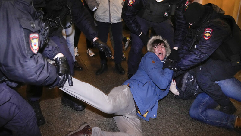 Hundreds are arrested as shocked Russians protest Ukraine attack