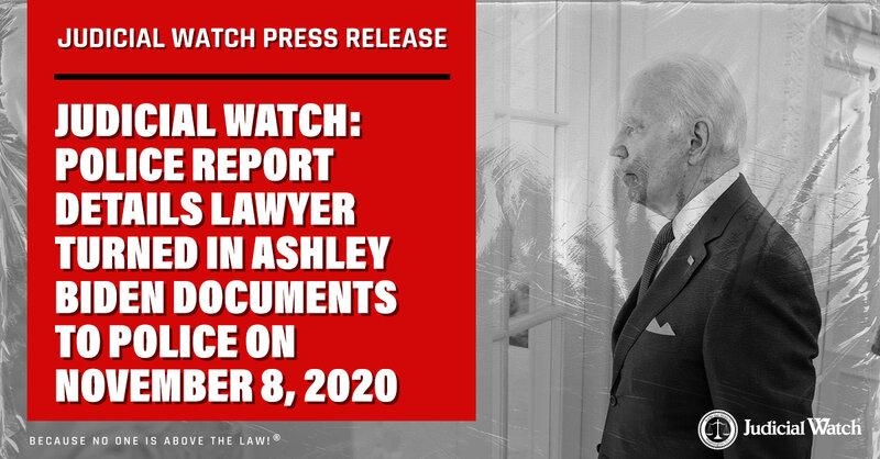 Judicial Watch: Police Report Details Lawyer Turned in Ashley Biden Documents to Police on...