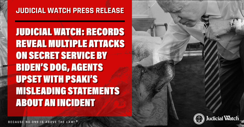 Judicial Watch announced today it obtained 400 pages of new records including incident reports detailing multiple attacks and damages caused to United States Secret Service (USSS) members by President Joe Biden’s dog Major at both the White House and Biden’s lake home in Wilmington, DE. The documents also reveal that a member of USSS who was attacked by the dog was displeased that White House Press Secretary Jen Psaki misled the press about the incident.