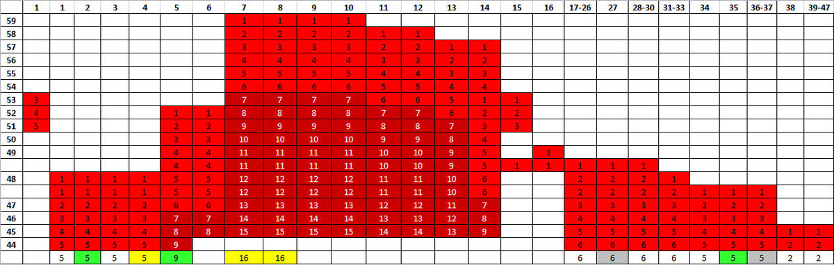 Light red indicates a normal serving unit; dark red a veteran legion; grey means that it sides with Caesar's murderers; green and yellow indicate serving with Marc Antony or Octavian respectively.