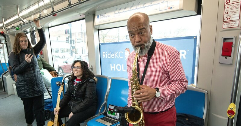 “Welcome to Kansas City’s Holiday Streetcar Jam, y’all,” he said, over the din of streetcar announcements and passengers shuffling on and off. “Just sit back, relax and enjoy yourselves!”