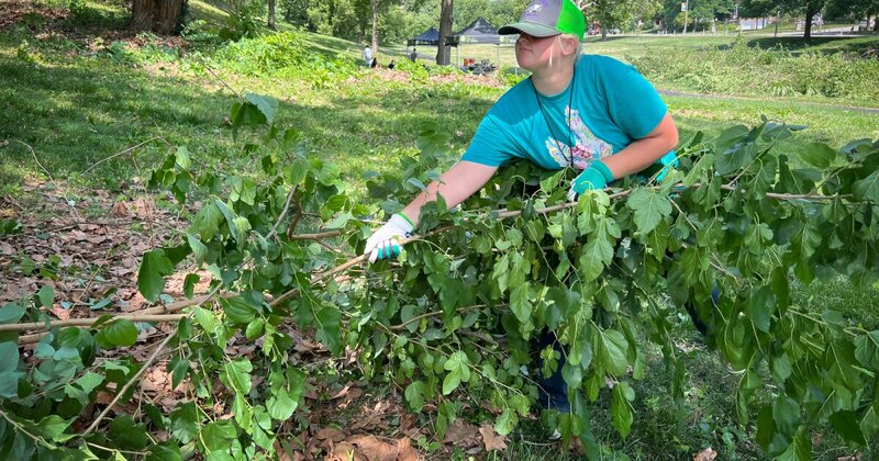 Kids from around the country on a Christian mission pull Kansas City's invasive honeysuckle