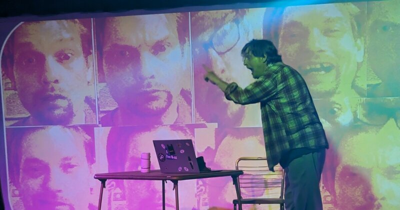 On stage at The Westport Bowery, Jeremy Auman depicts his experiences with hypomania, depression and suicidal ideation in his one-man show, "The Last Word is Hope: A Bipolar Biography."