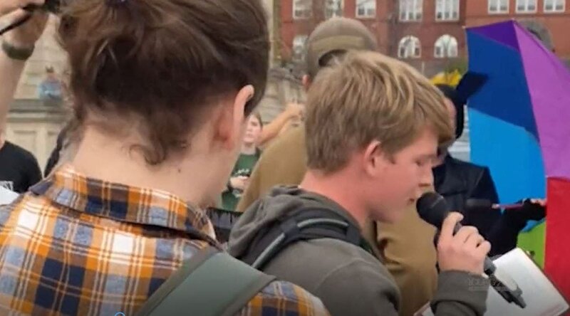 Left-wing activists harass conservative reading Bible, steal book and rip it up, protester eats...
