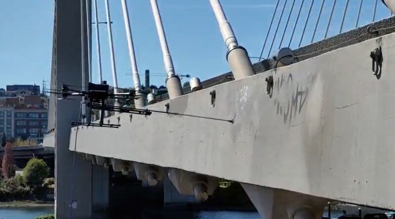 Look, up in the sky! It's a drone ... painting over graffiti in Washington state