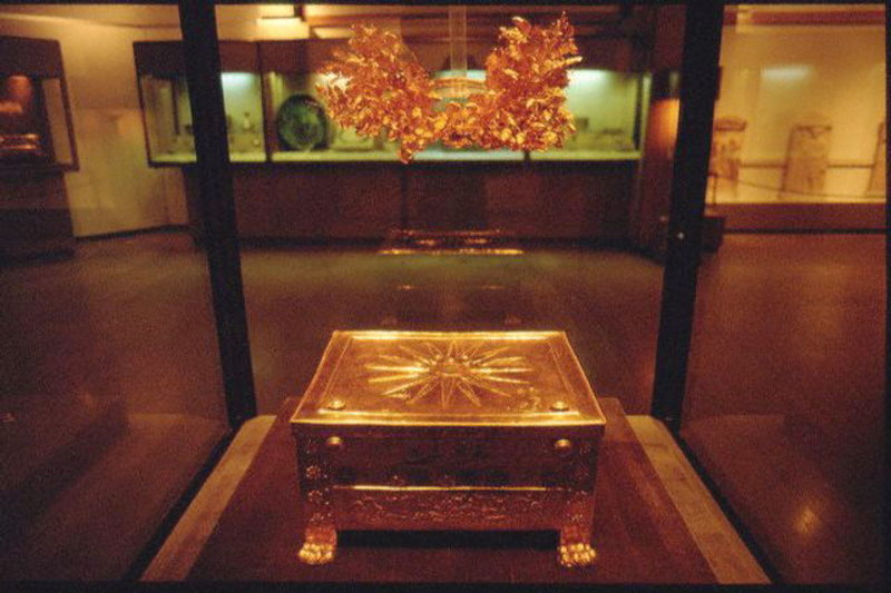 Manolis Andronikos conducted archaeological research in Veroia, Naousa, Kilkis, Chalkidiki and Thessaloniki, but his main research was done in Vergina, where his teacher, professor K. Rhomaios had founded in 1937 the Aristotle University Excavation at Vergina. His greatest discovery occurred on November 8, 1977, when he found a tomb at Vergina which he identified as that of Philip II of Macedon. It was unplundered and contained many valuable items, such as a golden larnax.[1] The finds from this tomb were later included in the travelling exhibit "The Search for Alexander" displayed at four cities in the United States from 1980 to 1982.[2][3] While the discovery is of great archaeological importance, the identification of the tomb with Philip has been disputed by some archaeologists; that said, if the tomb is not Philip's, one of the others in the same complex probably is.[4]