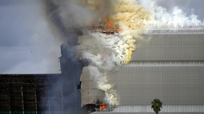 I remember being at a car show there in 1994 and I just saw those hangers the last november While landing and taking off from John Wayne Airport. That is Orange County Property. Arson?