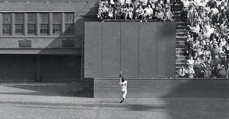 With the game tied 2–2 in the eighth inning of Game 1 of the 1954 World Series, the Cleveland Indians had runners on first and second against the New York Giants. Cleveland's Vic Wertz hit a 425-foot shot to center field, and Willie Mays sprinted towards the wall to track it down. Mays caught it over his shoulder, turned and gunned it back towards the infield, saving the runs."