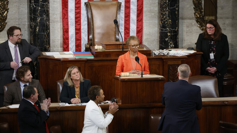 But in the absence of a speaker, that job has fallen to House Clerk Cheryl Johnson.