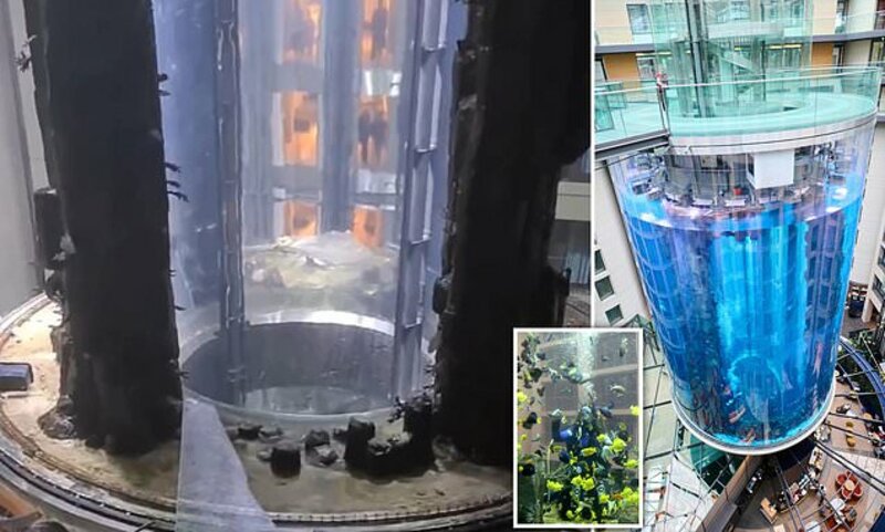 Mega aquarium EXPLODES in German hotel, injuring two people