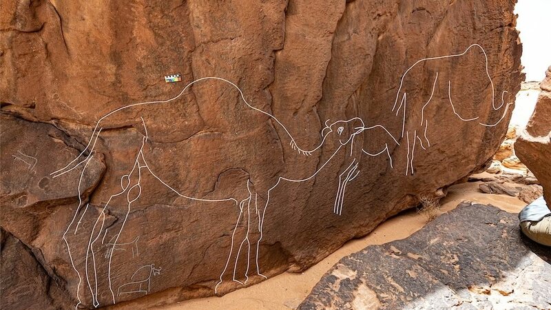 Archaeologists have documented a cluster of carvings depicting camels on a rock outcropping near the southern edge of Saudi Arabia's Nafud desert.
