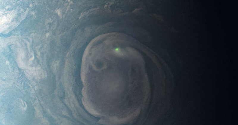 NASA spacecraft captures glowing green dot on Jupiter caused by a lightning bolt